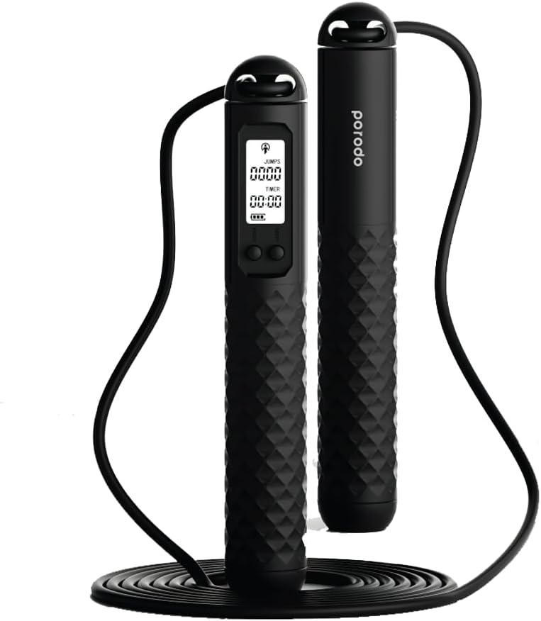 Porodo Lifestyle Smart Skipping Rope – PD-SMVJP-BK, Bluetooth Connectivity, Digital Display, Voice Broadcast, 3M Adjustable Length,