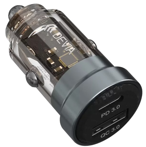 Devia Punk Style Car Charger EA362 – 30W PD USB‑C & QC3.0 USB‑A Dual‑Port Fast Car Charger –