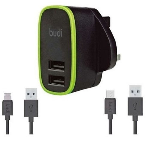Budi 056U Dual USB Wall Charger with Lightning & Micro USB Cables ā Fast Charging Adapter for Smartphones Price in Oman