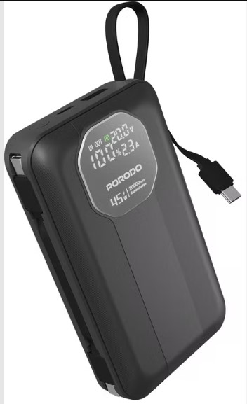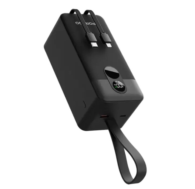 Porodo 50000mAh Power Bank with Integrated Cables (PBFCH061) – Fast Charging, USB-C & Lightning Outputs, Digital Display