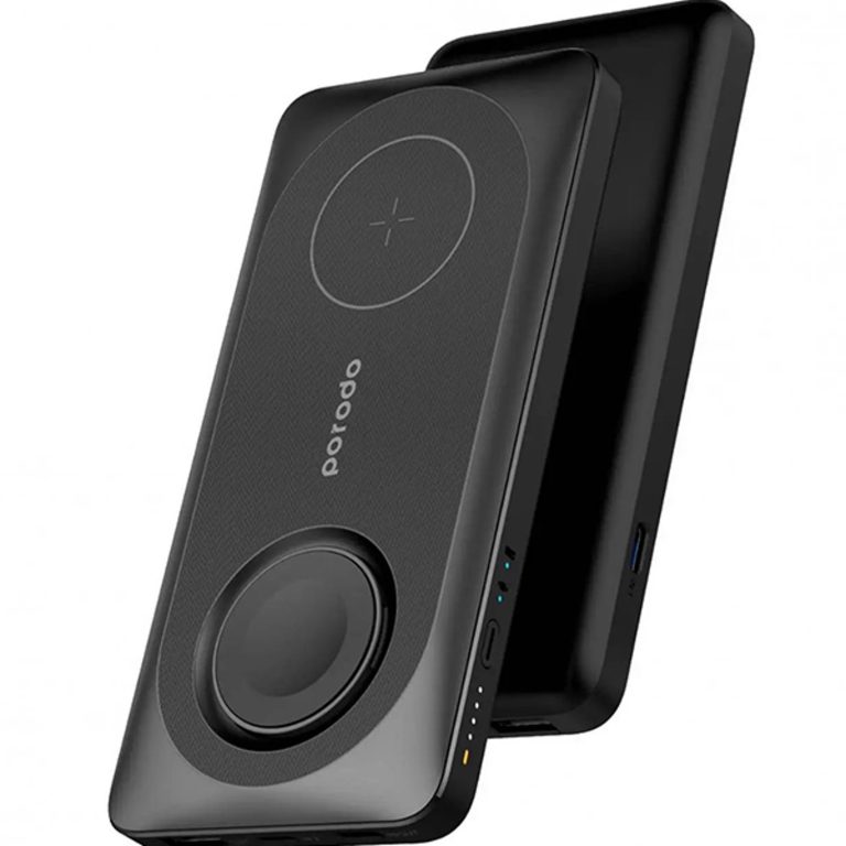 Porodo PD‑PBFCH021‑BK – 10 000 mAh MagSafe Power Bank with 20 W PD, 15 W Wireless & Integrated Apple Watch Charger