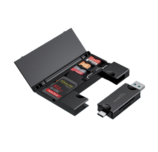 Porodo PB‑CACRH‑BK – USB‑C Multi‑Card Reader & Storage Box (SD + MicroSD, Travel‑Safe)