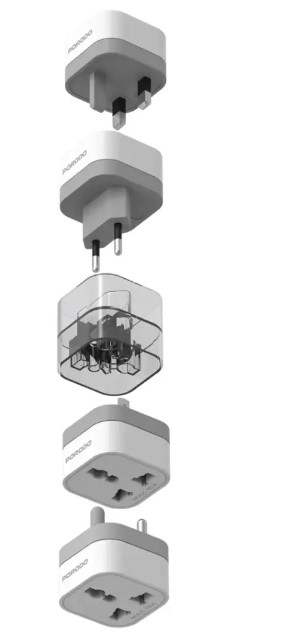 Porodo 150+ Countries Universal AC Adapter FWCH041 – Multi-Functional Travel Plug with UK, US, SA & EU Compatibility, 2500W Capacity,