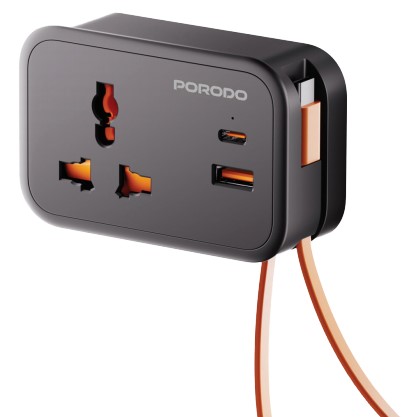 Porodo Universal Wall Socket PD‑FWCH056 – UK 3‑Pin Plug with Built‑in 30 cm USB‑C Cable, 20 W PD, 18 W USB‑A Charging (Price In Oman)