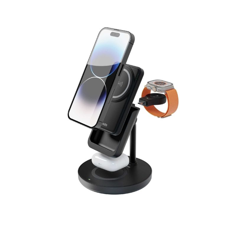 PORODO 5000 mAh 4‑in‑1 MagSafe Power Bank Dock (PD‑PBF CH024) – Wireless Multi‑Device Charger –