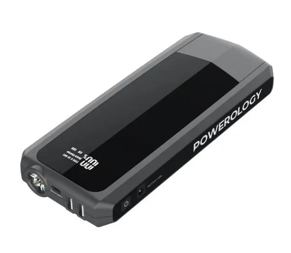 Powerology 16000mAh Jump Starter Power Bank NBC29 ā 18W PD Fast Charging, 1200A Peak Current, 6L Petrol & 3.5L Diesel Engine Compatibility, LED Flashlight, LCD Display,