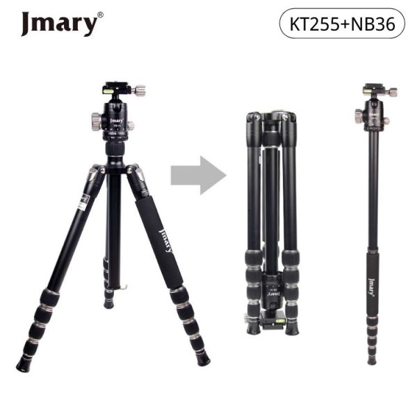 Jmary KT225 + NB36 – 5 ft Professional Aluminium Tripod & Monopod Combo with 360° Pan Head (8 kg Load)