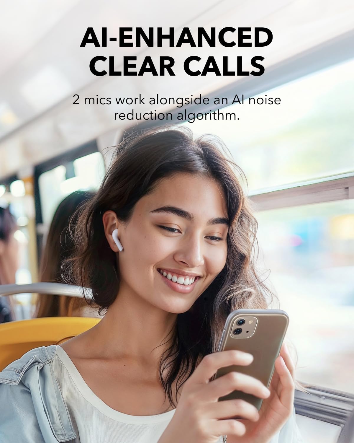 The Soundcore K20i earbuds are equipped with 13mm dynamic drivers and BassUp technology, delivering powerful bass and clear treble for an exceptional listening experience. The dual-mic ENC (Environmental Noise Cancellation) ensures crystal-clear calls by reducing background noise.