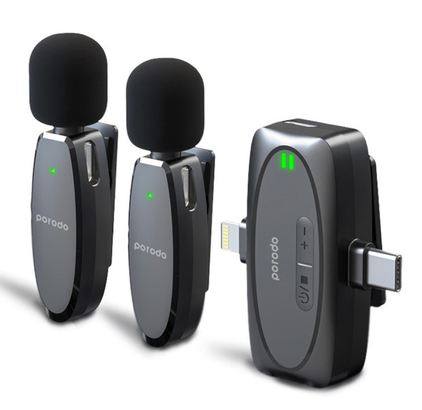 Porodo PD-2MLAV-BK Dual-Mic Lavalier – Lightning/Type-C/AUX – 7.5 h Use