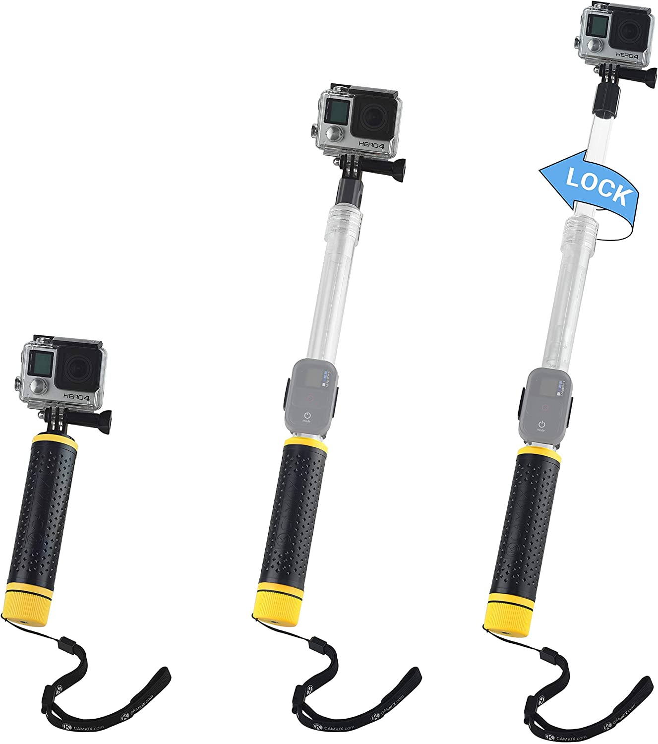 - Extendable pole for wide-angle shooting