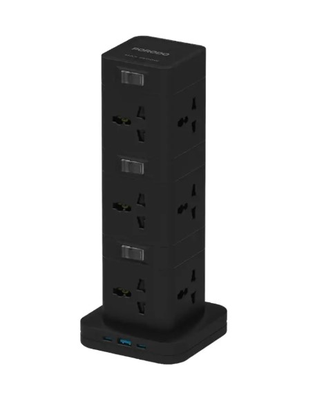 Porodo Three-Story 12AC Power Hub FWCH042 – USB-C PD & Quick Charge 3.0, 2500W Capacity,