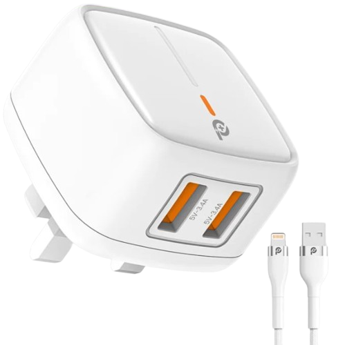 Powero+ British Dual USB 3A Wall Charger TC24UK – 12W Fast Charging Adapter with Surge Protection,
