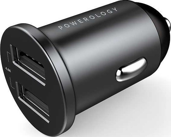 Powerology Dual Port Aluminum Car Charger 4.8A 24W (PCCSR001) – Fast Charging Compact Car Adapter