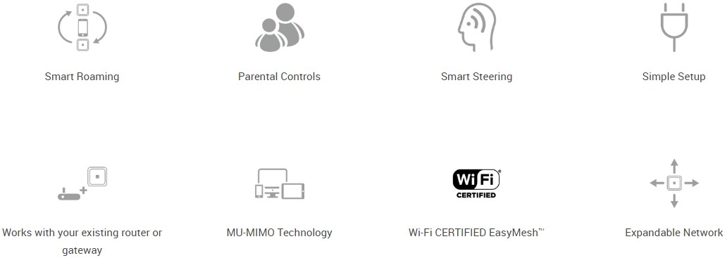 Equipped with dual-band AC1200 speeds, the system provides up to 300 Mbps on the 2.4 GHz band and 867 Mbps on the 5 GHz band, accommodating multiple devices simultaneously without compromising performance. The Wi-Fi CERTIFIED EasyMesh™ technology allows for flexible network expansion, while MU-MIMO and Smart Steering ensure efficient bandwidth distribution and optimal device connections.