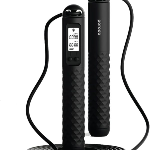 Porodo Lifestyle Smart Skipping Rope – PD-SMVJP-BK, Bluetooth Connectivity, Digital Display, Voice Broadcast, 3M Adjustable Length,
