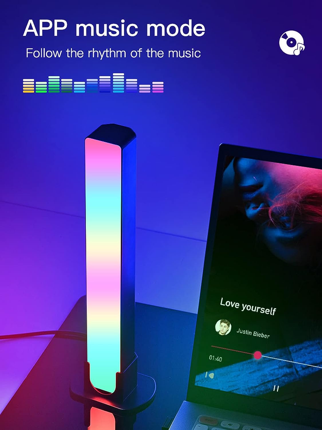 Transform your workspace or bedroom into a vibrant ambiance hub with the Desktop Atmosphere RGB Light V22 from Sky Gadgets Oman. This app control desk lamp lets you select from millions of colors, adjust brightness, and set timers—all directly from your smartphone. It supports both Bluetooth music sync light and Wi‑Fi RGB desk lamp modes, reacting to the beat of your favorite tracks for immersive mood lighting.