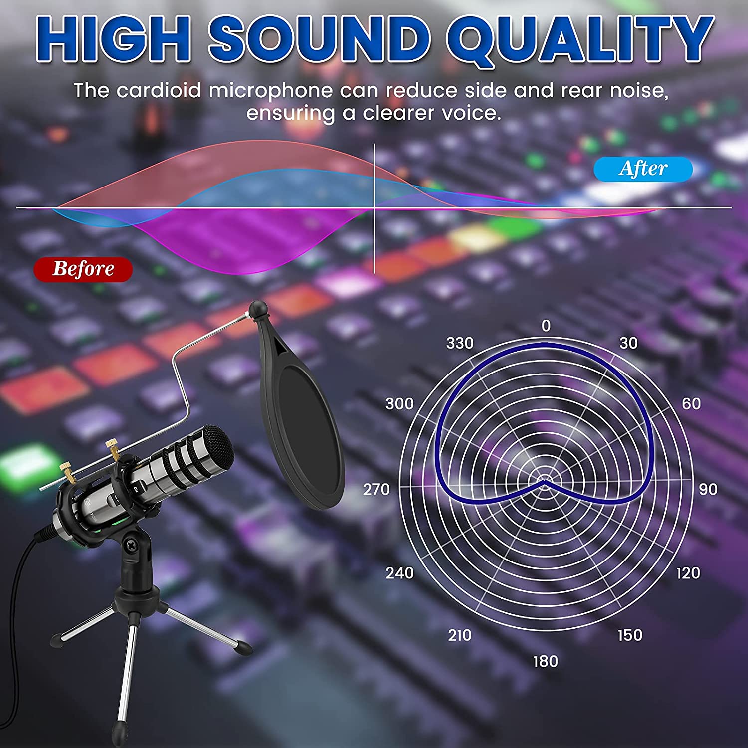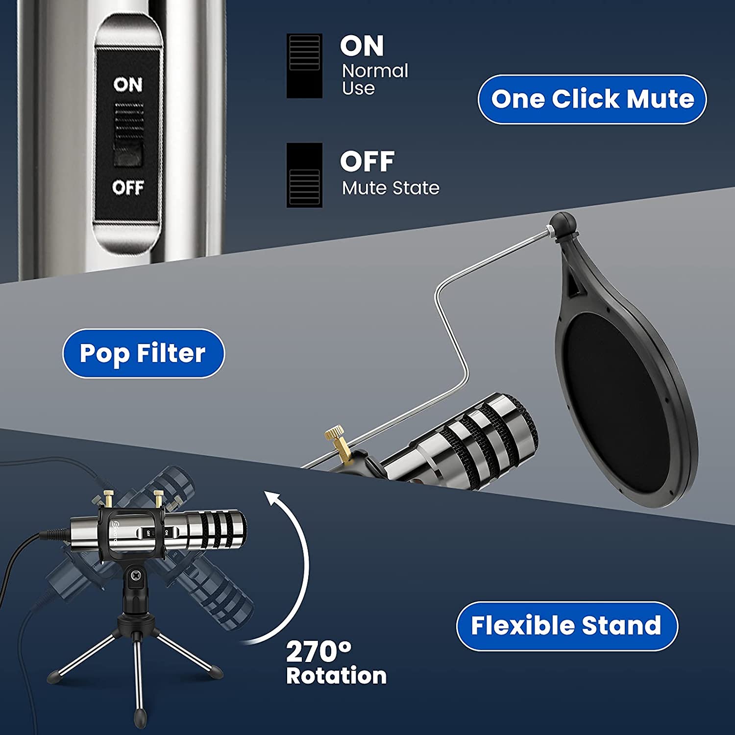 EIVOTOR Sensitive Microphone A1 – Professional USB Condenser Microphone with 3.5mm Jack, Plug & Play,