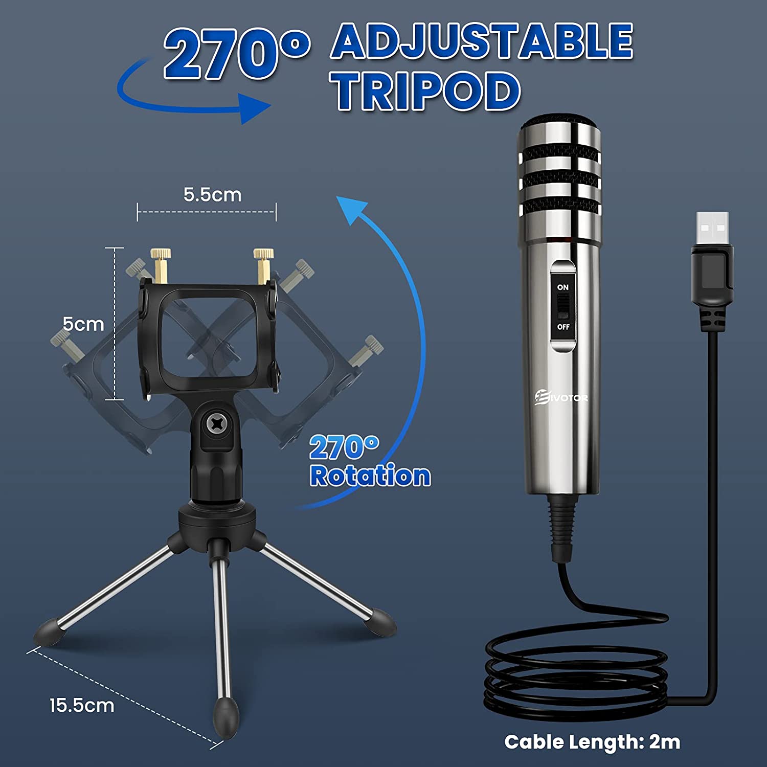 Whether you’re podcasting, streaming, or participating in online meetings, the EIVOTOR microphone offers versatility and reliability. Its sturdy tripod stand ensures stability during use, while the compact design makes it a portable companion for on-the-go recording needs.