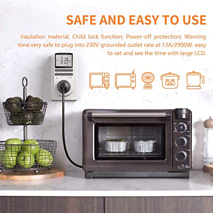 Besvic TM02 Digital Programmable Timer Socket with LCD Display – 24-Hour/7-Day Plug-in Timer for Home Appliances,