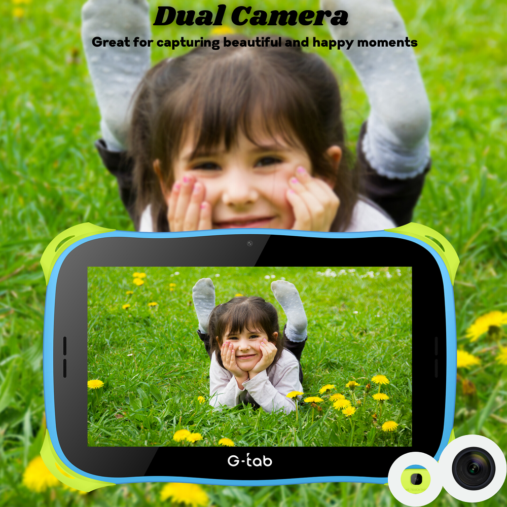 Built with young users in mind, the G‑Tab Q6 kids tablet includes built-in parental controls that let caregivers filter content and set usage limits. A 2 MP front and rear camera allow kids to snap pictures or enjoy video chat with family. Its IPS LCD display (1024×600) is easy on the eyes, even during long viewing sessions.