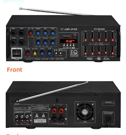 Stereo Karaoke Power Amplifier LF-05T – 2-Channel 15W+15W, Bluetooth, USB/SD/FM, Dual Mic Inputs,