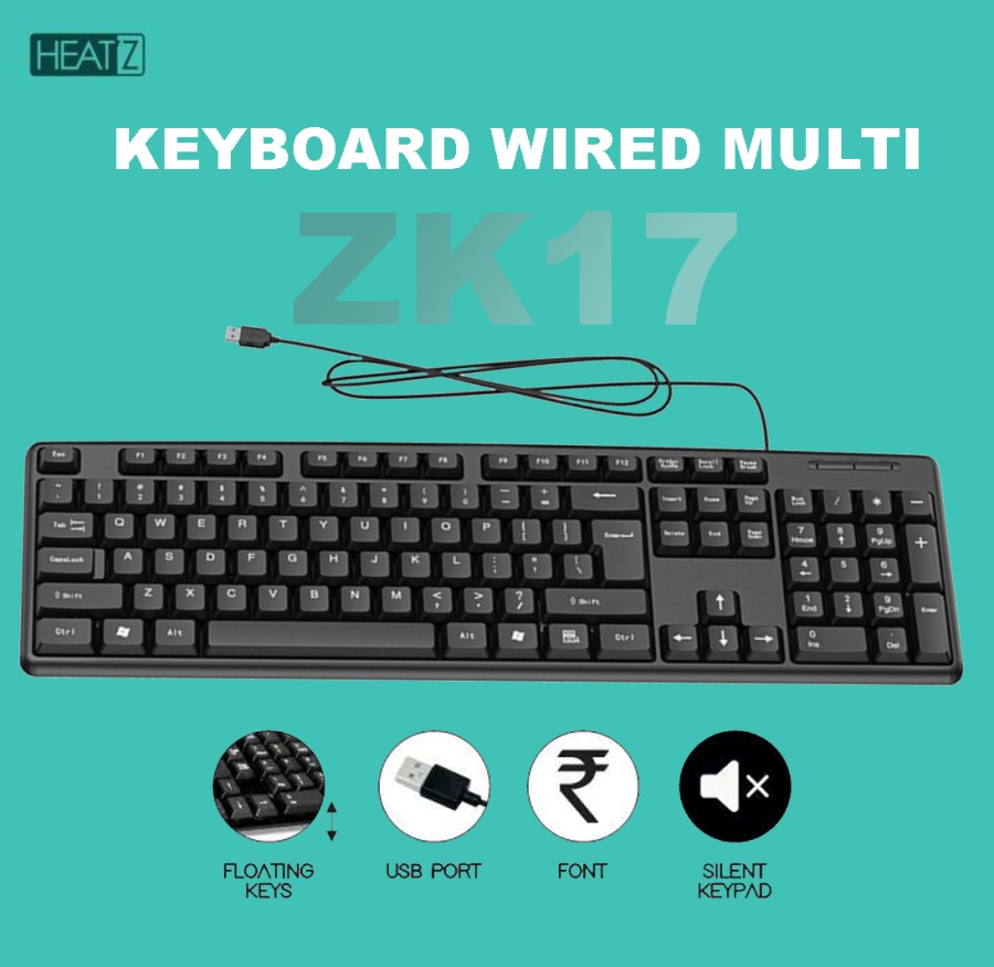 Heatz ZK17 Wired Multi Keyboard – Full-Size USB Keyboard with 104 Keys for Efficient Typing,