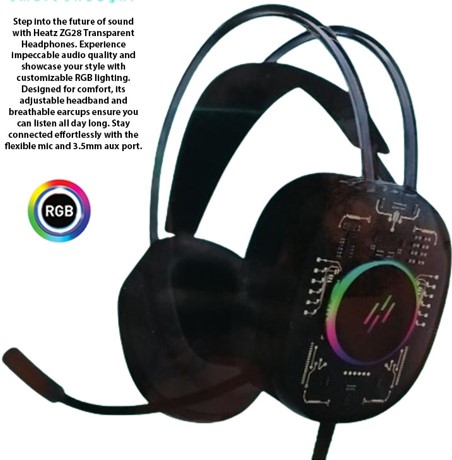 Heatz ZG28 Wired Headphone Trans Head – High-Fidelity Sound, Comfortable Design, 3.5mm Jack,