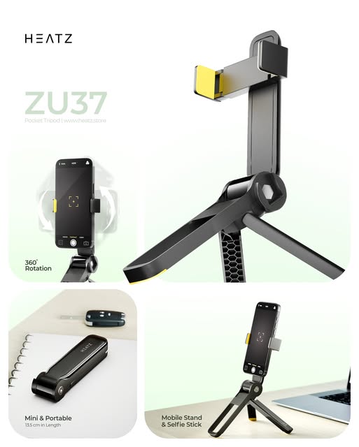 Heatz ZU37 Pocket Mini Tripod – Compact Travel Smartphone & Vlogging Tripod for Mobile Phones (Price In Oman)