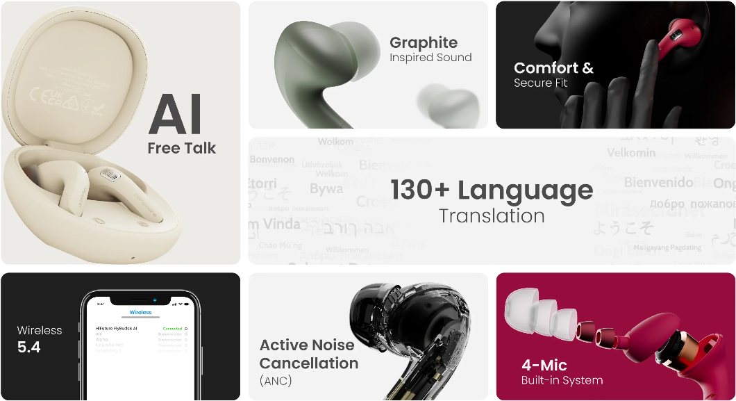 Hifuture TWS FlyBuds4 ANC – Wireless Bluetooth Earbuds with Active Noise Cancellation