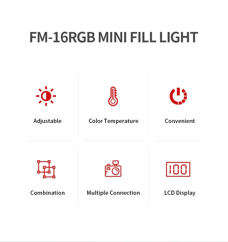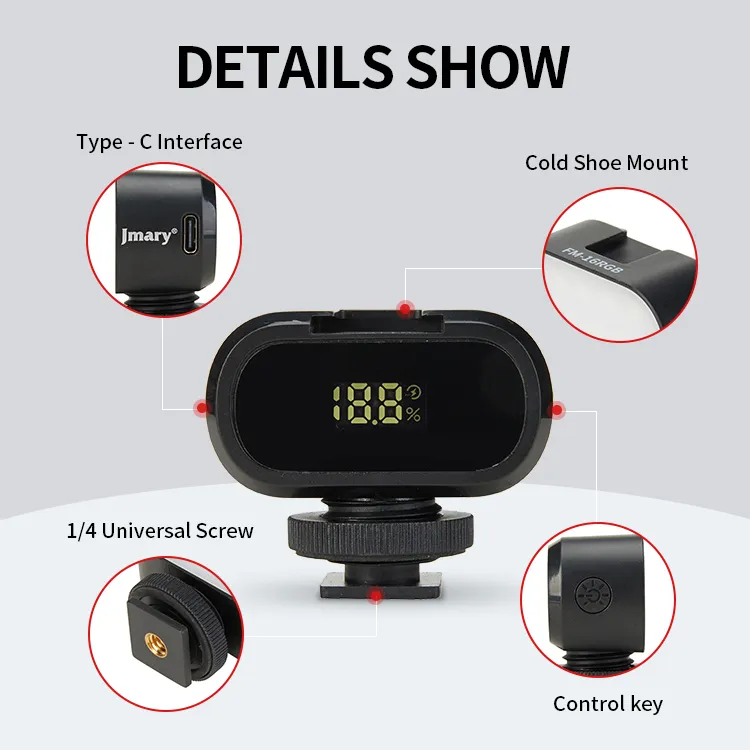Light up your content with the Jmary FM‑16RGB Mini RGB Video Fill Light, designed for creators in Oman seeking compact RGB lighting that delivers professional results. With 16 adjustable RGB LED beads offering vibrant color effects and knob dimming control, it enhances your video fill light setup. The built-in 750 mAh rechargeable battery powers up to 1.5 hours on max brightness—perfect for streaming, vlogging, and video calls.