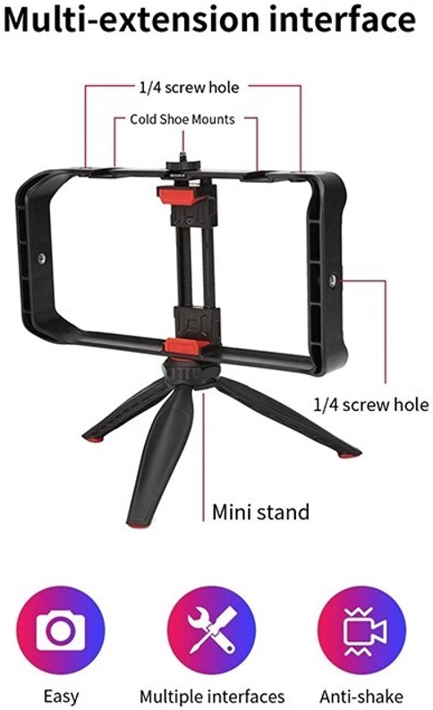 Equipped with five 1/4-inch screw interfaces and three cold shoe mounts, this kit provides ample options for attaching essential accessories like microphones, LED lights, and monitors. The included 14 cm tripod ensures stability on various surfaces, while the compact 25.5 x 13 x 5.2 cm cage size makes it highly portable.
