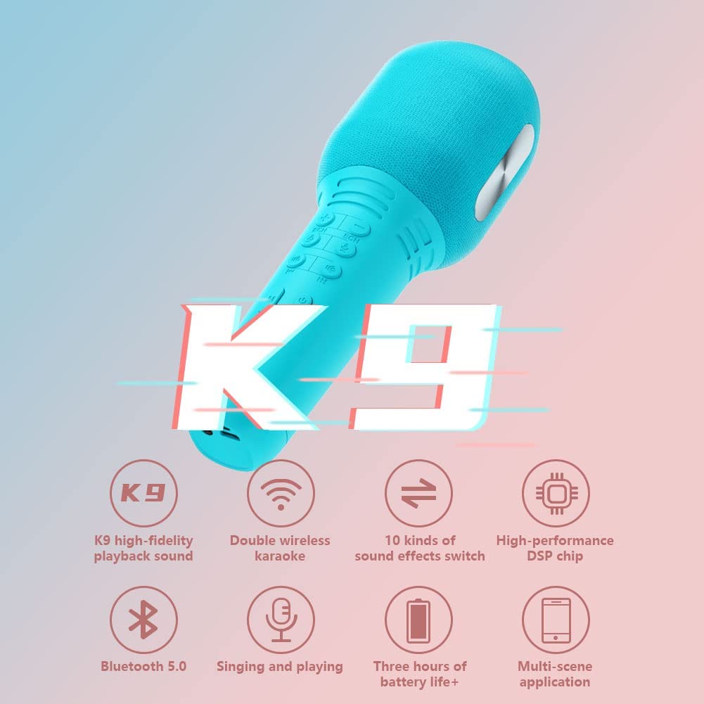 K9 Handheld KTV Wireless Bluetooth 5.0 Karaoke Microphone with Built-in Speaker – Portable & Rechargeable