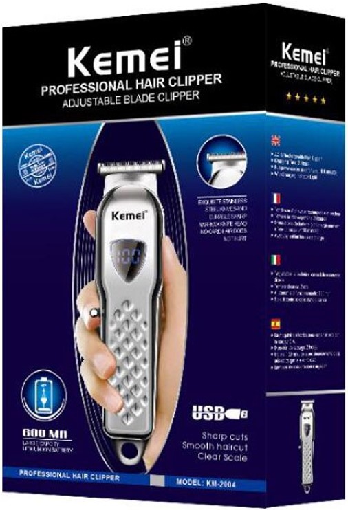 Featuring a silver metallic design, the KM-2004 is not only stylish but also durable. Its stainless steel blades ensure a sharp and smooth cut every time. With a rechargeable battery, enjoy up to 150 minutes of continuous use on a single charge, and a quick 2-hour charging time keeps you ready for any grooming session.