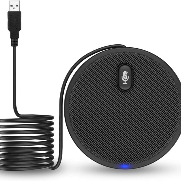 USB Conference Omnidirectional Microphone – 360° Condenser Mic with Mute Button – Plug & Play for Online Meetings –