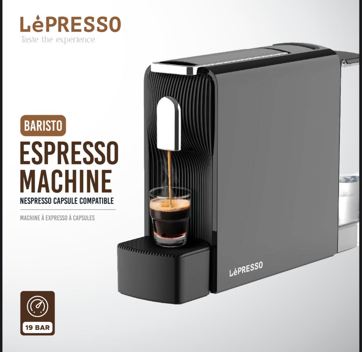 Lepresso Baristo Espresso Machine LPCFFM0045BK – Nespresso-Compatible, 19 Bar, 550 mL Tank, Programmable Volume –