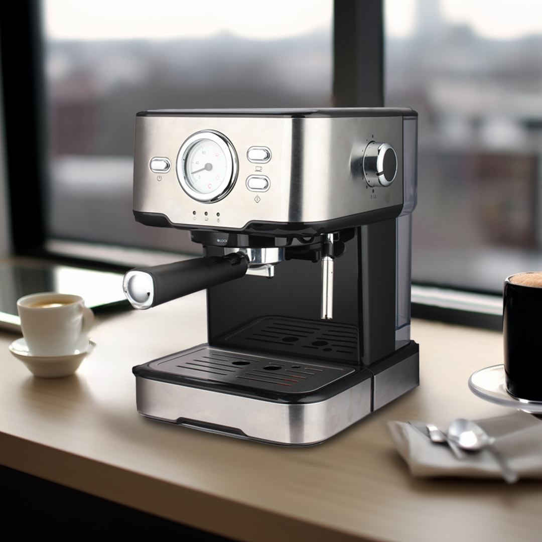 LePresso LP15CMBK Dual-Cup Barista Espresso Machine – 1100W, 9–15 Bar Pump, Steam Milk Frother & 1.5L Tank