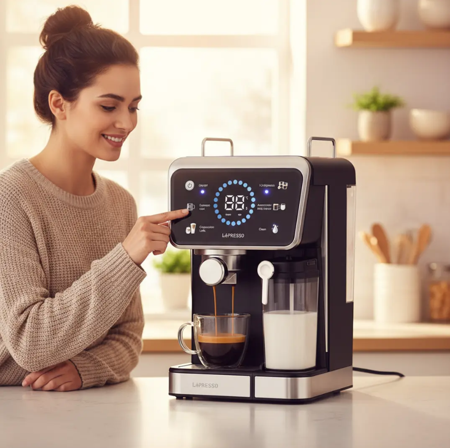 LePresso Dual Brew Drip Coffee & Espresso Machine with Milk Steamer & Flow Meter – LPCFFM0002