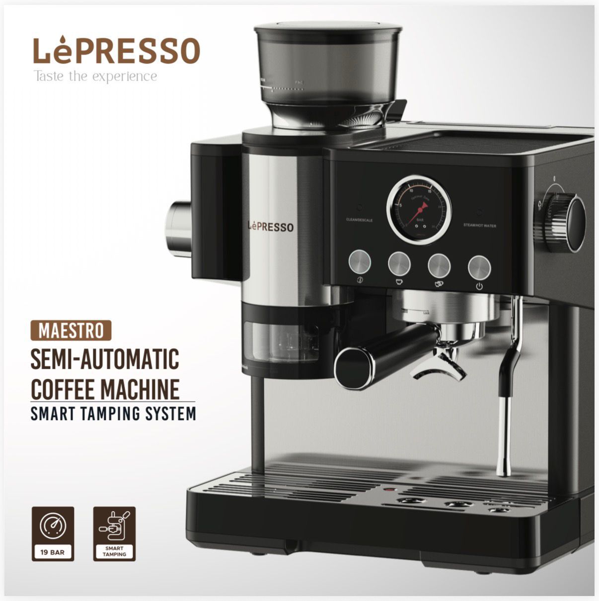 LePresso Semi‑Automatic Espresso Machine with Grinder & Milk Steamer – 19 Bar, 2 L Tank (Price In Oman)