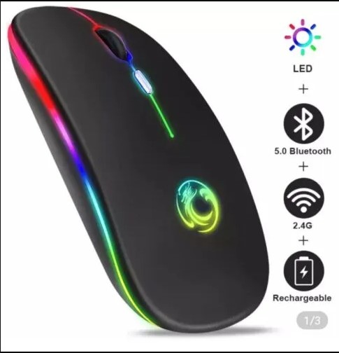 Porodo 3-in-1 Wireless Bluetooth Mouse – 2.4GHz, Dual-Mode, Rechargeable, Silent Click, Ergonomic Design,