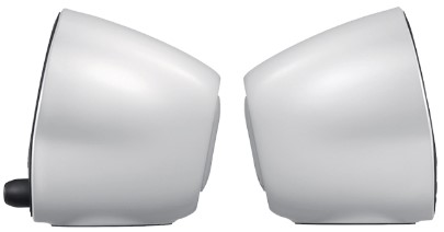 Controls: Integrated power and volume controls on the right speaker
