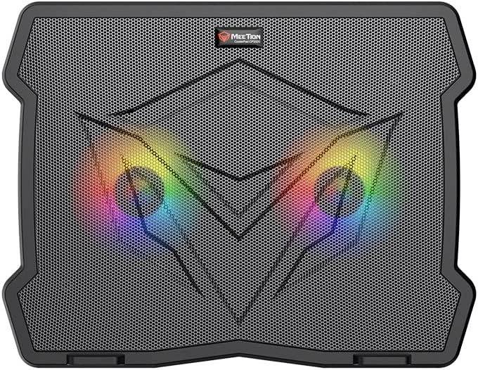 Meetion CP2020 RGB Gaming Laptop Cooling Pad — Dual-Fan USB Hub, Adjustable Tilt for 9–14″ Laptops