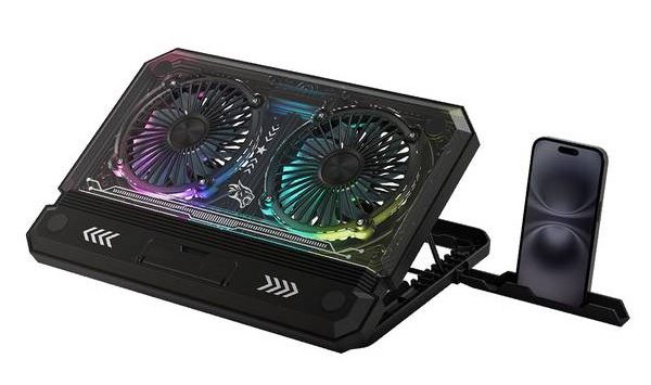 Porodo PDX121 Crystal Shell Laptop Cooling Pad – Silent Dual Fans, Adjustable Stand, LED Lighting,
