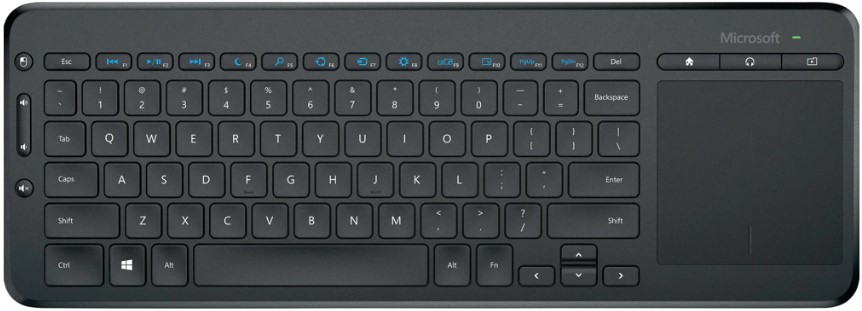 Microsoft Wireless All-In-One Media Keyboard 163 – Integrated Touchpad, Spill-Resistant, 10m Range – Muscst