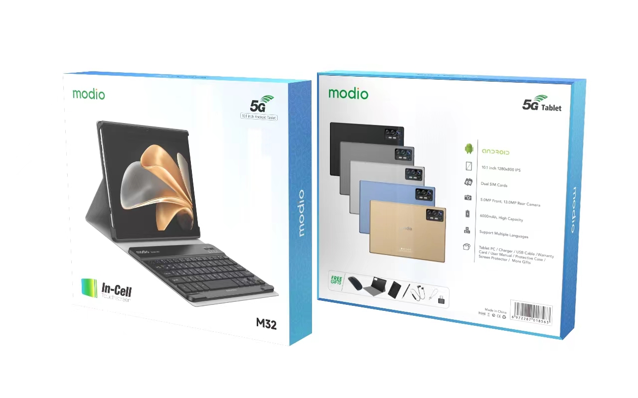 Modio Tablet M32 — 10.1″ 5G, 8GB RAM / 512GB Storage, 6000mAh, Wireless Keyboard Bundle