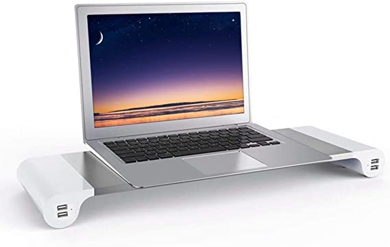 Crafted from durable, heat-dissipating aluminium, this space bar desk riser doubles as a cooling platform for laptops. The front-mounted monitor riser with USB hub (4× USB ports + AC outlet) adds convenient device-charging capabilities while reducing cable clutter. Anti-slip pads ensure stability on all desk surfaces.
