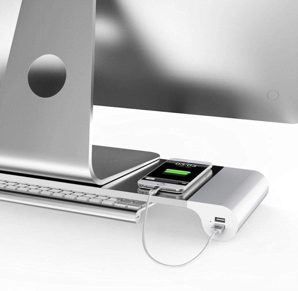 Monitor Stand “Space Bar” Silver – Aluminium Ergonomic Riser with USB Hub & Storage –