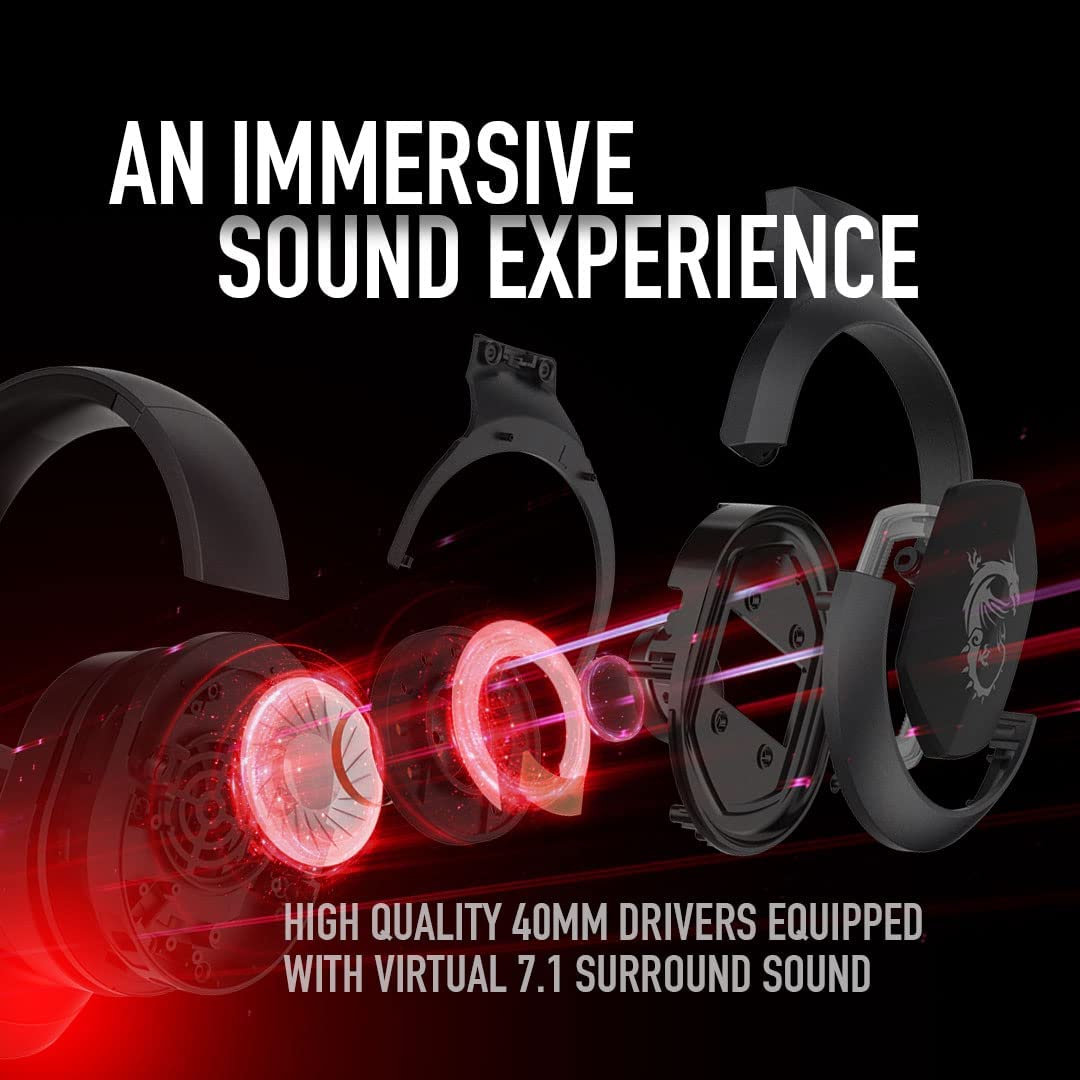 MSI Immerse GH50 Gaming Headset – 7.1 Surround, RGB Mystic Light, Low‑Latency, 50 mm Drivers, Detachable Mic