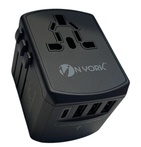 NYORK Universal Power Adapter 4× USB (PD) – Multi-Port Fast Charger with USB-C PD & USB-A – Compact Travel Design