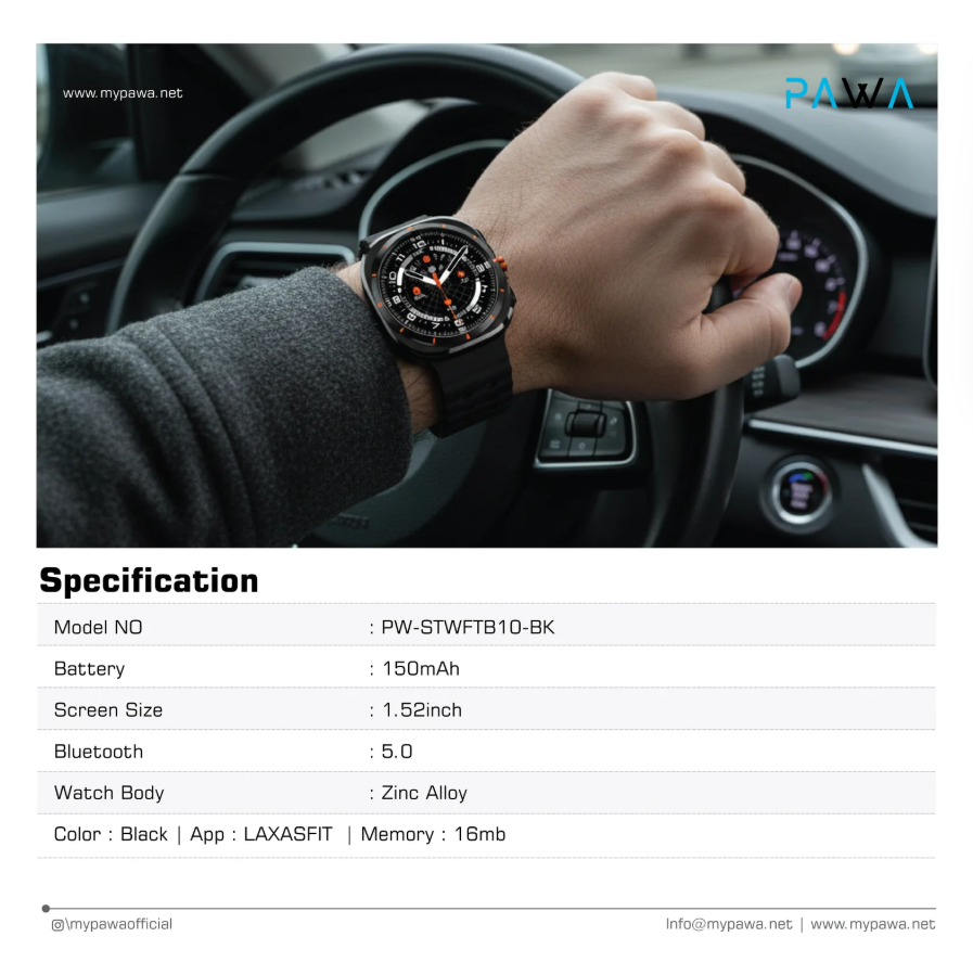 Pawa Aspire HD Display Smart Watch in Oman – 1.52” Compact Fitness Smartwatch