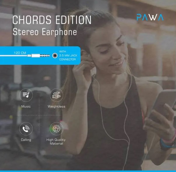 Pawa Chords Series Stereo Earphone PW-35EP20 – 3.5mm Wired In-Ear Headphones with Microphone